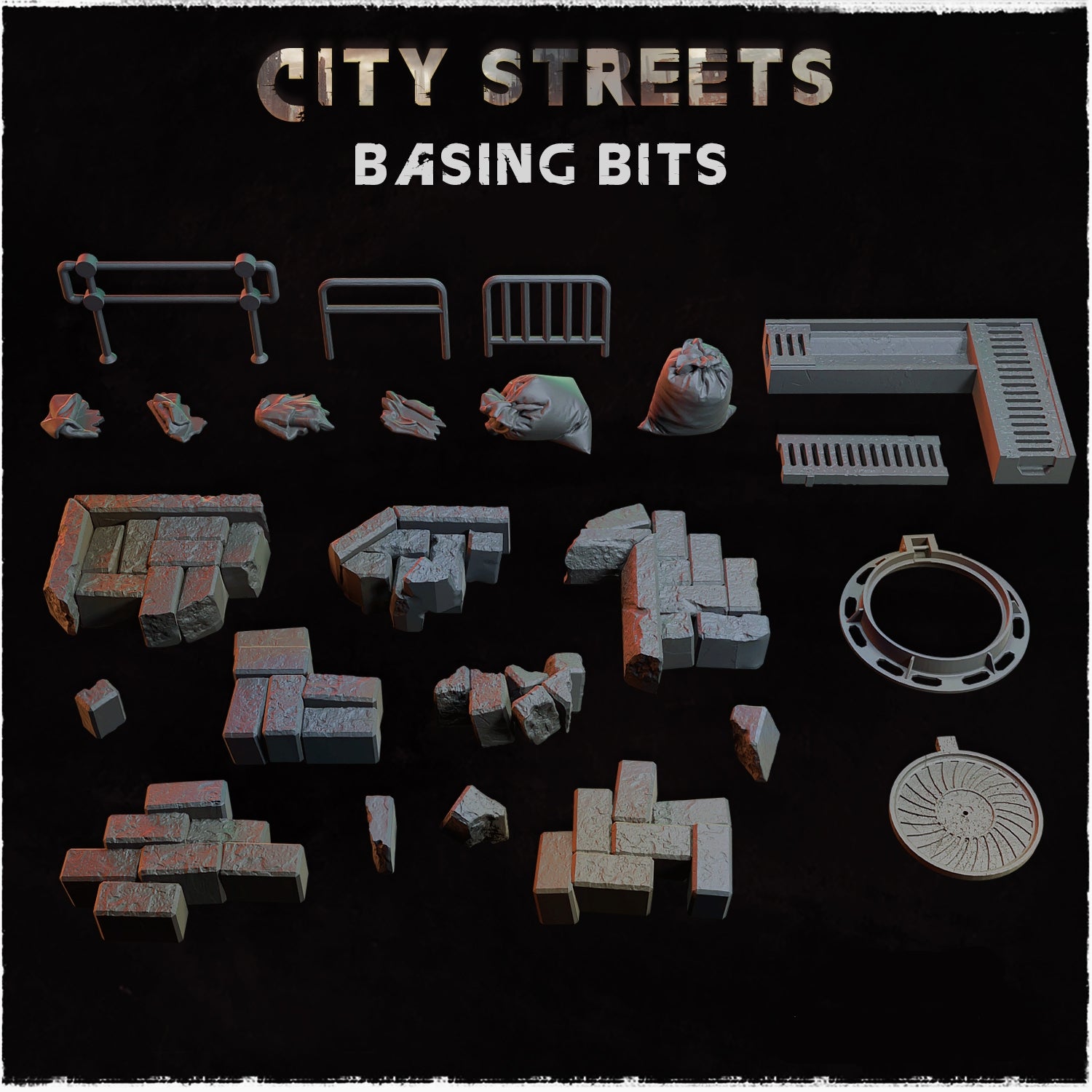 Looking for something to match your City Streets base toppers? Or maybe a few resin basing bits to make a second hand purchase match the rest of your army? Pick up a pack of these basing bits to make them fit the bill! All printed in 12K resolution these will make any model look fantastic.